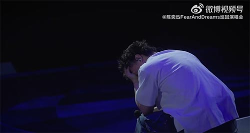 8月8日,陈奕迅在澳门演唱会上唱《七百年后》的时候,突然按着胸口干呕,表情很痛苦。