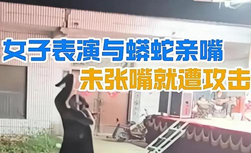 河南一婚礼女子表演与蟒蛇亲嘴 未张嘴就遭攻击