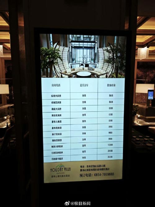 酒店微信公众号上显示,紫林山豪利维拉酒店是由格美集团于2025年在贵州省黔南州打造的五钻商旅度假酒店,集酒店住宿、餐饮、会务、休闲娱乐、康养于一体,是独山县唯一一家围绕“生态康养度假”为主题的酒店。酒店建筑面积7万平方米,进深240米,建筑高度99.9米,总层数24层,酒店精心打造了365间客房。 国庆前,“天下第一水司楼”变身豪华酒店引发关注。记者查询得知,国庆期间该酒店的最低价为400元,而行政双床房的价格为每晚2800元,行政豪华套房的价格为3809元。有入住过的网友点评认为酒店环境不错,也有网友认为饭又贵又难吃。 10月1日,极目新闻记者查询酒店订购平台看到,如果想从10月1日入住至8日,该酒店目前只剩下2500元的行政双床套房及3471元的行政豪华套房。酒店线上价格表上显示,从1日至8日,该酒店不同房型价格从300元至1130元不等,3日除2339元的行政双床套房和3303行政豪华套房以外,只剩下1130元的商务大床套房,最低入住价格为8日,当天标准大床房价格为300元。 酒店工作人员也告诉记者,实际上该酒店10月3日已经满房,包括3688元的行政豪华套房也被订了,行政双床套房则在5日无房,如果旅客想在长假期间一直入住该酒店,建议分开购买。(极目新闻)
