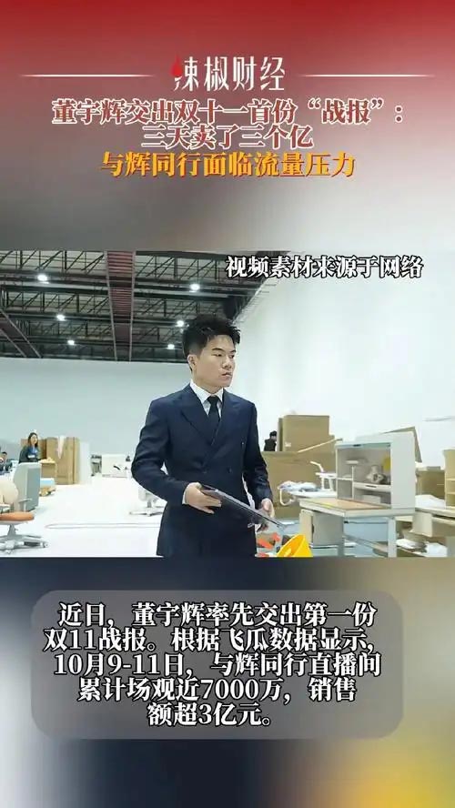连续三天,董宇辉在这里带货。据飞瓜数据显示,10月9日至11日,与辉同行累计吸引近7000万人次观看,卖出了超3亿元销售额。