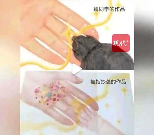 事情要从今年的7月份开始说起。魏同学回忆,当时她在短视频平台上,刷到了一个央美同学的作品,与自己的一幅作品高度相似。魏同学向现代快报记者展示了一张照片,这幅作品是以该照片为原型创作的。“今年是2025年,我家狗狗今年正好10岁了,我就拿以前一张和狗狗‘握爪’的照片为原型,画了这幅作品。对我来说非常有意义。2月,我把这幅作品发布在了社交平台上。”