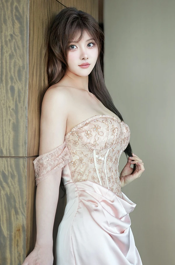 秀人女神梨霜儿粉色长裙内内饱满双峰私购流出
