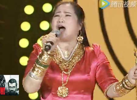 4月12日播出的山东电视《让梦想飞》节目中,来自临沂的金姐大凤,身披百万黄金带来一首《一壶老酒》获得了三位评委老师和现场观众全体为她鼓掌认可!大凤,来自临沂,今年37岁,自称金姐,她脖子上挂了18条项链(黄金主打,一条大约在200克左右),戴了20个手镯(黄金大约17个,每个在70克左右,当然还有高端玉器手镯),6个戒指(黄金居多,其中包括钻戒)连挂10个吊坠,耳环是黄金的平安锁有2个。初步估算黄金有11斤,总价值大约百万。