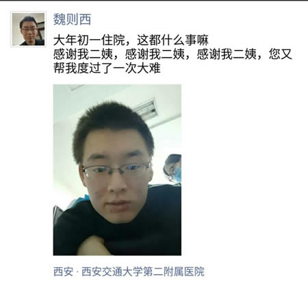 前两天我因为底下的肿瘤长破了,伤口不知道怎么处理,我爸就和这位医生联系,问什么时候他方便我们去医院他帮着看一下,当时我刚从广西303出院,好不容易坐飞机活着回家,身体极度虚弱,正愁怎么去医院,他居然说魏则西现在不方便,我去你们那吧,可我们现在不在医院,在家啊,那我就去你家吧,我明天两台手术,估计两点多结束,你到时候给我打电话,没想到手术比预计长了两个多小时,我们联系上的时候已经五点多了,当时想着肯定没戏了,没想到他说你给我发个定位,我开车去,到我家的时候已经七点多了,洗了个手之后就直接开始处理我的伤口,在家里吃饭的时候,我说,徐大夫,我非常信任你,我把我的想法给你说清楚,如果还有一丝希望,我就坚持下去,无论多么痛苦,只要我人不崩溃,如果没有希望,我希望你可以告诉我怎么比较没有痛苦的离开,我也不想我爸我妈再几万几万的给我买药了,到最后我痛苦的多活了几个月,他们把积蓄花光,能借的钱借完,房子也卖了,实在不想这样