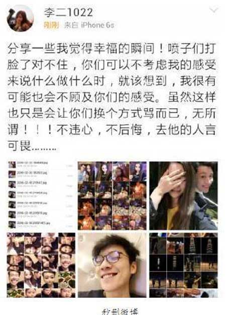 对此,20日凌晨“李二1022”在微博上传与乔任梁大量合影,不过之后她又秒删,此举被认为是她要表示自己确实是Kimi女友,并非炒作。有网友对其遭遇表示理解,男友离世又要承受网络暴力;也有网友觉得她只是为了博取同情。