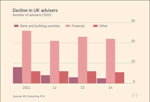 理财顾问协会Liberatum估计,自新规出台后,有1.35万名顾问离开了该行业,而英国金融市场行为监管局(FCA)公布的数字为2000人。