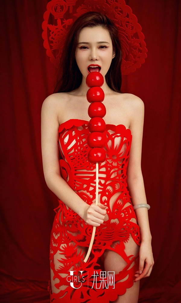 惹火女神萌琪琪春节窗花遮体销魂福利诱惑写真