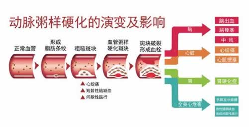 据介绍,正常的动脉内壁光滑、坚实而富有弹性,而发生粥样硬化后的动脉,由于血脂沉积于动脉内膜,内膜纤维化,形成粥样斑块,血管壁也随之增厚、僵硬、钙化,这个过程即俗称的“粥样”硬化。
