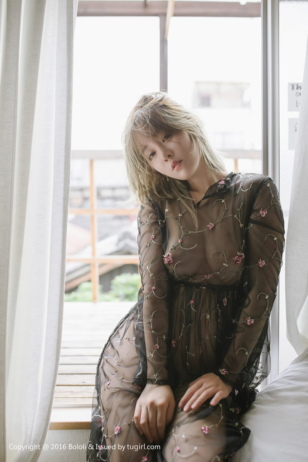 波萝社新刊王雨纯黑色薄纱连身裙+大尺度真空透视凸点诱惑写真