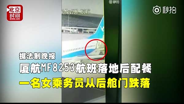10日,郑州新郑机场停机坪上厦航MF8253航班落地后配餐时,一乘务员从后舱门跌落至停机坪,乘务组与机场保障部门随即采取措施同时调查事件原因。截至当日23时,@厦门航空 尚未通报进展。据了解,乘务员胸十二椎体压缩性骨折。