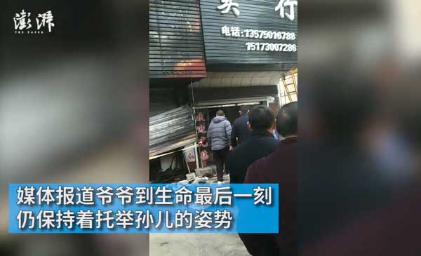 12月27日,湖南岳阳。一底层超市凌晨失火,二楼祖孙4人被困。事故致使2名老人1名儿童死亡。当地媒体报道,小孩的爷爷直到生命最后一刻,仍保持着托举孙儿的姿势。