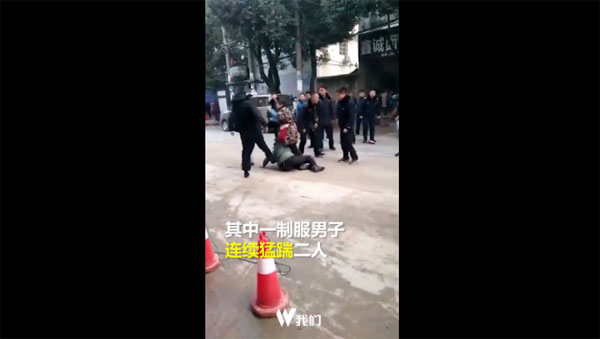 12月29日上午,在湖北省武汉市新洲区中医医院门口,几位身穿城管制服的男子围着一男一女,其中一制服男子连续猛踹二人。目击者称当时城管让摊贩收拾一下,然后发生争吵,城管遂动手。新洲区城市管理委员会通报称,摊贩丁某系占道经营拒不退出,城管与其发生冲突扭打。现丁某被送医检查,带队队长及当事人朱某已被停职停岗,区纪委已介入调查。