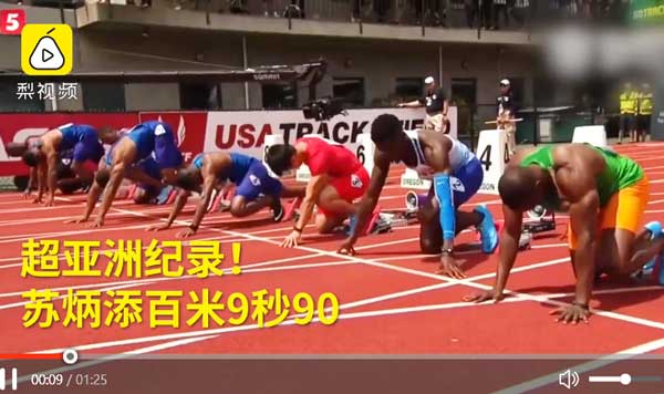 实拍苏炳添9秒90!超风速破亚洲纪录!