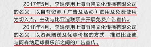 贵司文中还提到的与阿森纳的合作,也是由上海比亚迪推进并有贵司总部直接参与。