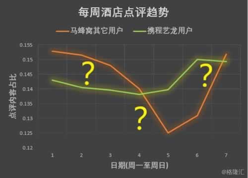 大众点评是:用户周末点评比较活跃,周中比较冷寂;马蜂窝的大部分用户:集中在周中写点评,一到周末,断崖式下跌,酒店点评也是一样诡异。