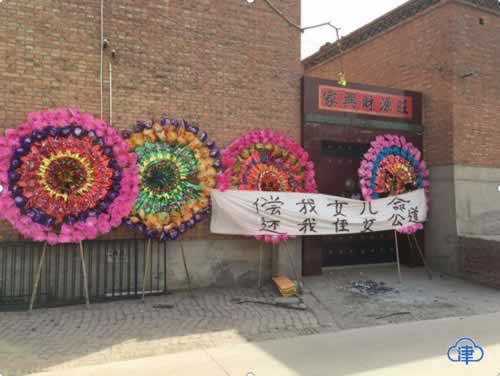 如今,宋芳家已被警方贴了封条。大门口被李家人拉起了白色横幅“偿我女儿命,还我侄女公道”。