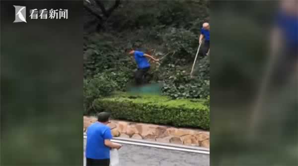 先打死小动物再拖行其尸体,小王说,当时现场有不少人都目睹了这一幕,纷纷觉得这几名工作人员的行为实在是有些残忍。小王说:“当时这个动物还流着血,周围还有不少小朋友都在看,这么处置一个动物,我感觉实在不合适。”