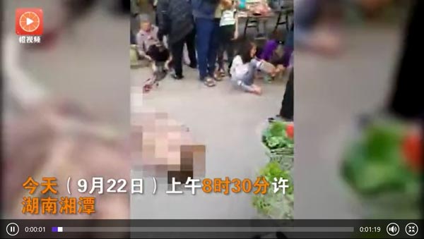 实拍湖南湘潭一货车冲进早市人群致10死16伤视频