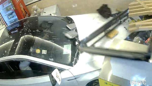 实拍西安一小车冲进餐饮店撞毁前台2店员受伤视频
