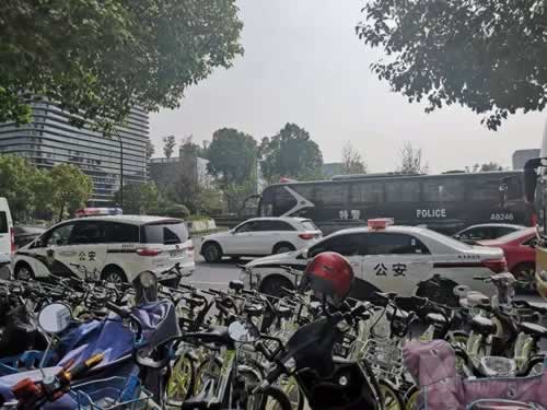 10月21日上午,大量警察突击清查上市公司“51信用卡”位于杭州西溪谷的办公地点。每日经济新闻记者在现场看到,至少有15辆写有公安字样的警车停在51信用卡大楼所在的紫霞街上,包括一辆写有特警字样的车辆。