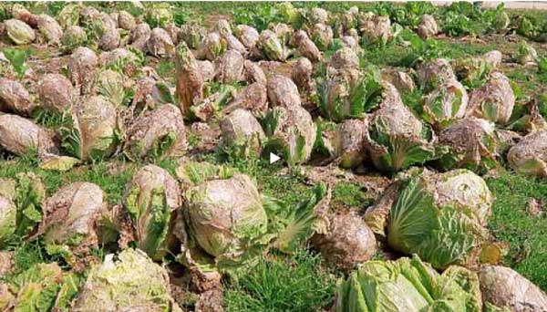 实拍湖北村庄十万斤蔬菜滞销村民愁坏大白菜萝卜已烂地里视频
