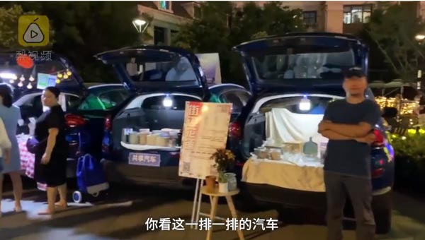 实拍郑州白领下班开私家车摆地摊后备箱直接变摊位视频