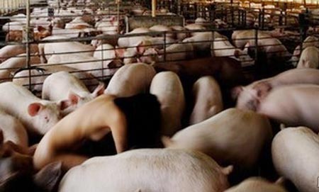 一名韩裔美籍的美女摄影师MiruKim在纽约举办“ThePigThatThereforeIAm”自拍摄影展,照片中她全裸躺在猪圈里,任凭猪靠近甚至紧贴彼此肌肤。Kim想通过自拍,探索人类与动物之间相似之处,并批判人类自以为比动物优越。