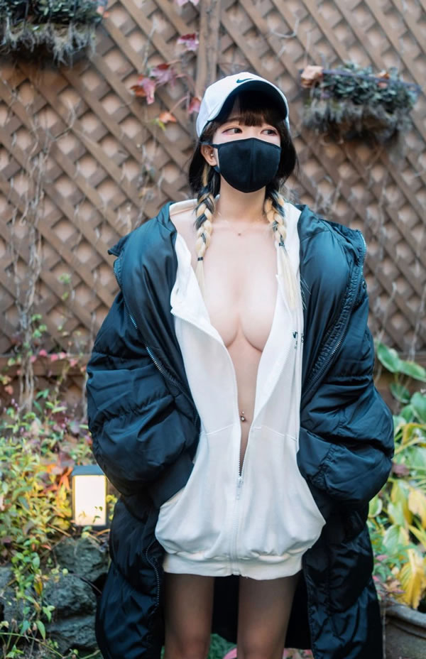 双麻花女生Aram真空羽绒服户外诱惑写真
