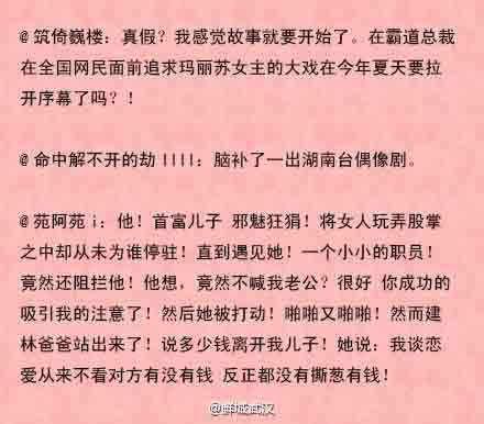 看完这个故事,不少网友都忍不住吐槽“五十度灰的即视感。”“哈哈,王阻拦原来是这么来的啊?太搞笑了。”“网友的智慧真的是太厉害了,人人都能写小说当编剧了都。”“这是年度大戏,众人转载,王思聪可以请导演开拍了。”