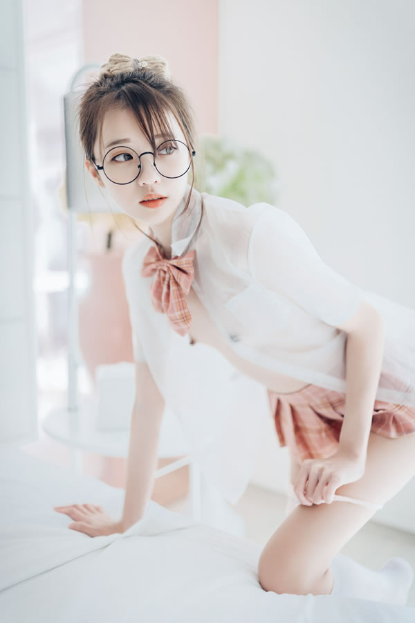 宝藏女孩妍妍透明制服粉粉的露出写真